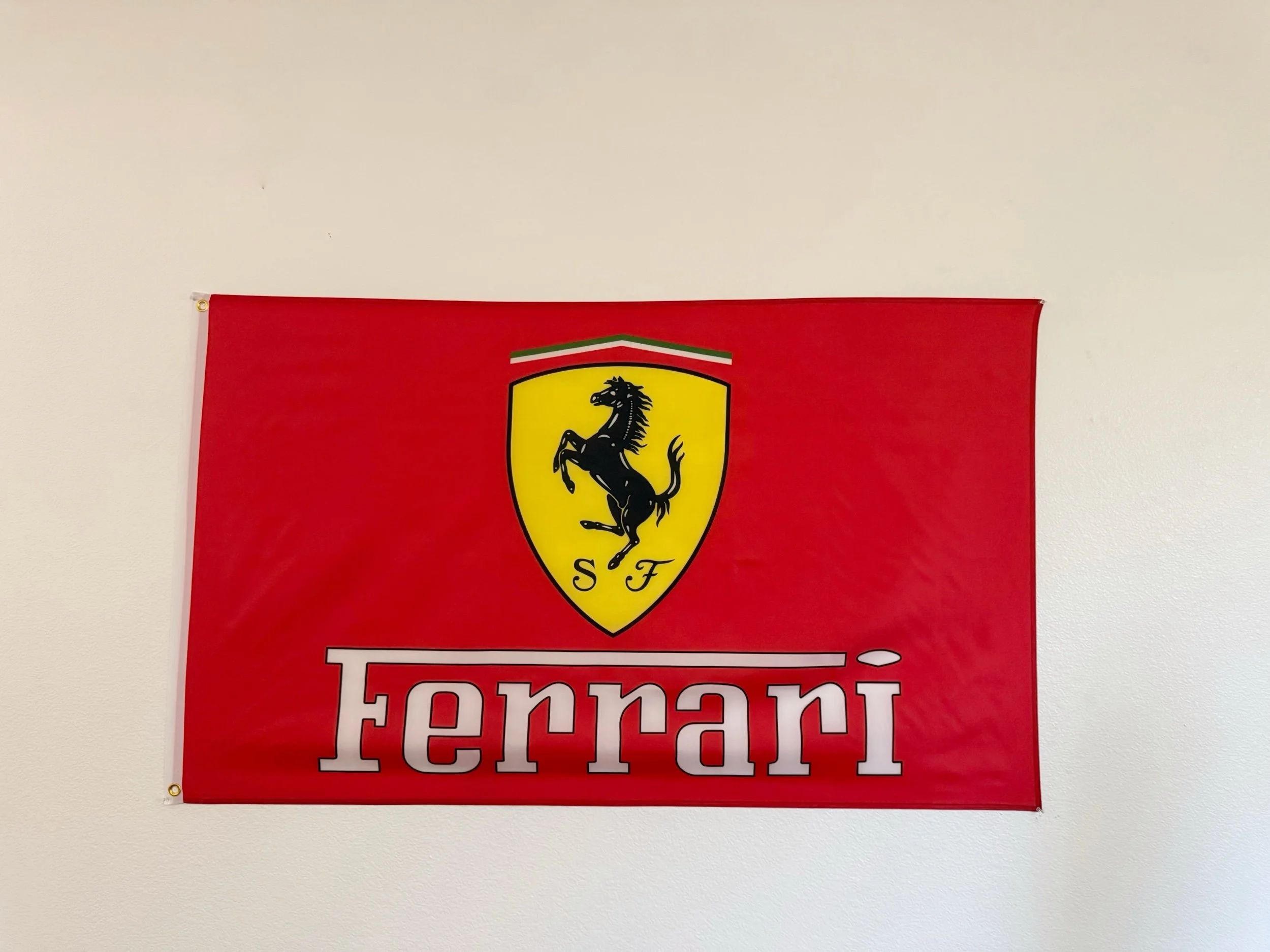 Elevate your space with this iconic 3x5 Ferrari flag, featuring a bold yellow Ferrari logo centered on a vibrant red background – the ultimate Ferrari banner for car enthusiasts and racing fans! Crafted from durable, weather-resistant polyester fabric, this high-quality Ferrari racing flag is perfect for hanging in garages, man caves, workshops, auto shops, or any automotive-themed room. Whether you’re a Ferrari collector, supercar lover, or motorsport aficionado, this 3x5 ft Ferrari wall banner adds a touch of Italian luxury and speed to your decor.