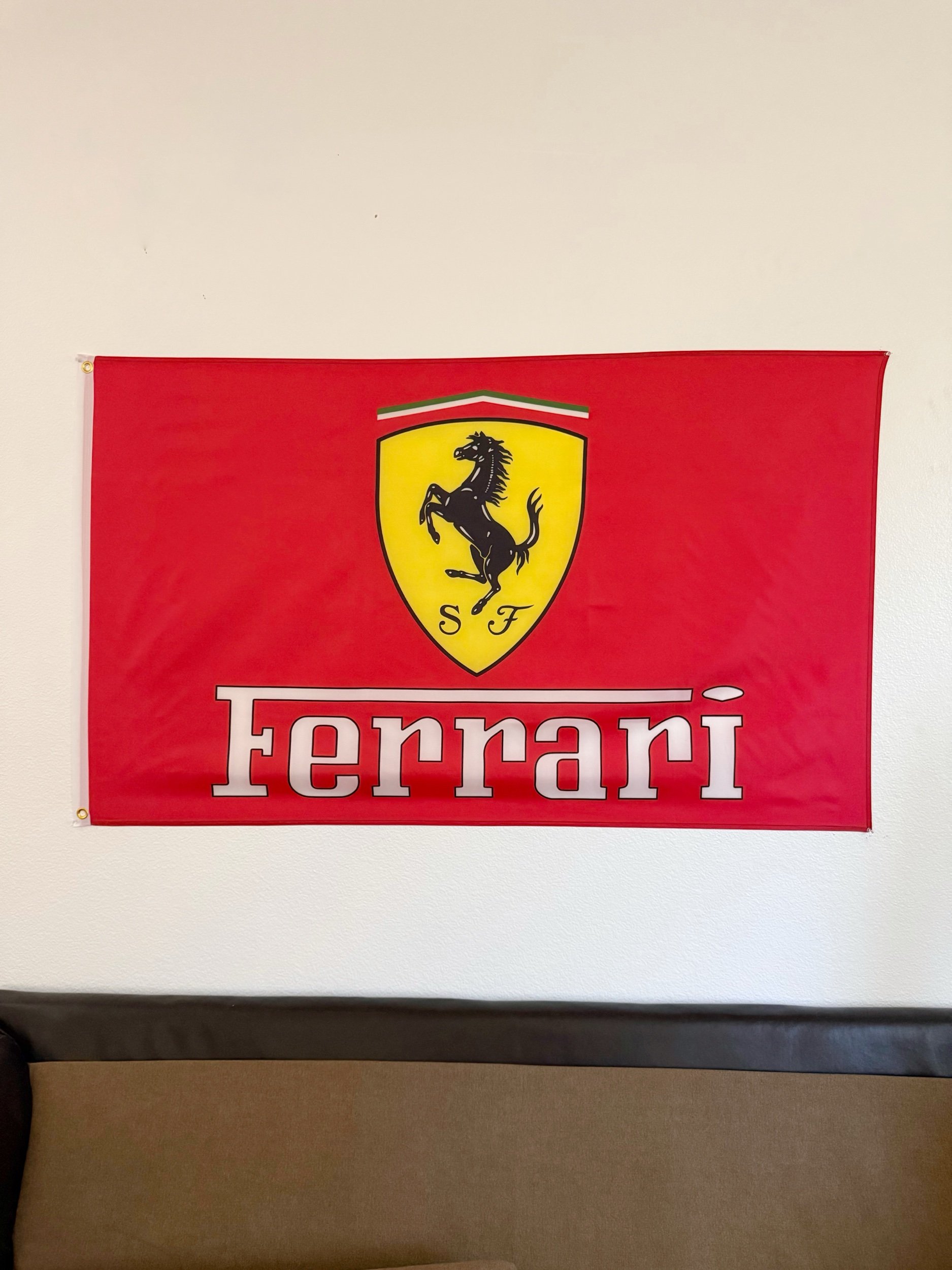 Transform your garage into a Ferrari-inspired haven or show off your passion at car shows and events. This Ferrari 3x5 flag is a must-have for any supercar garage accessory collection. Free shipping on all orders! Shop now and rev up your walls with this premium Ferrari flag.