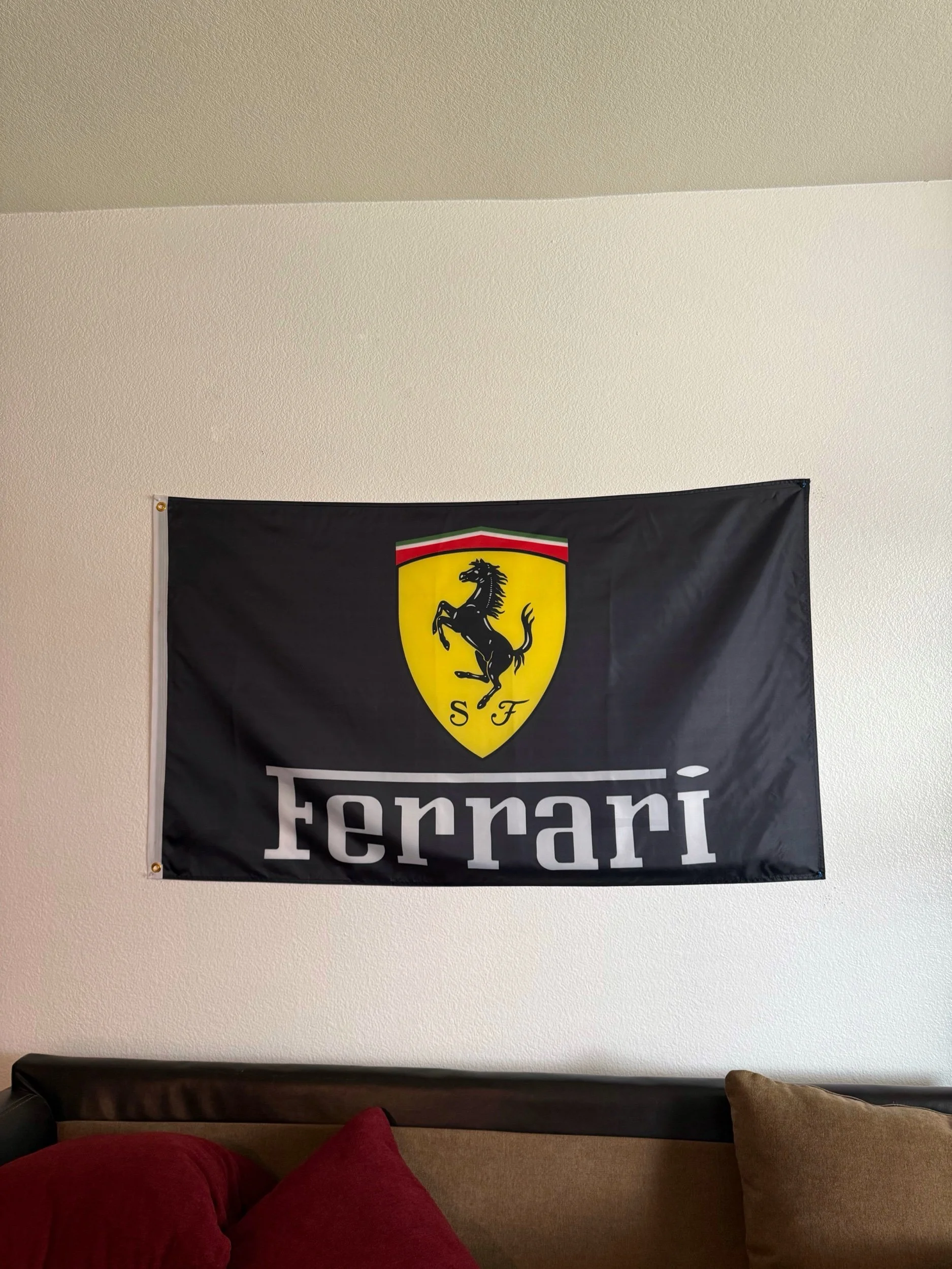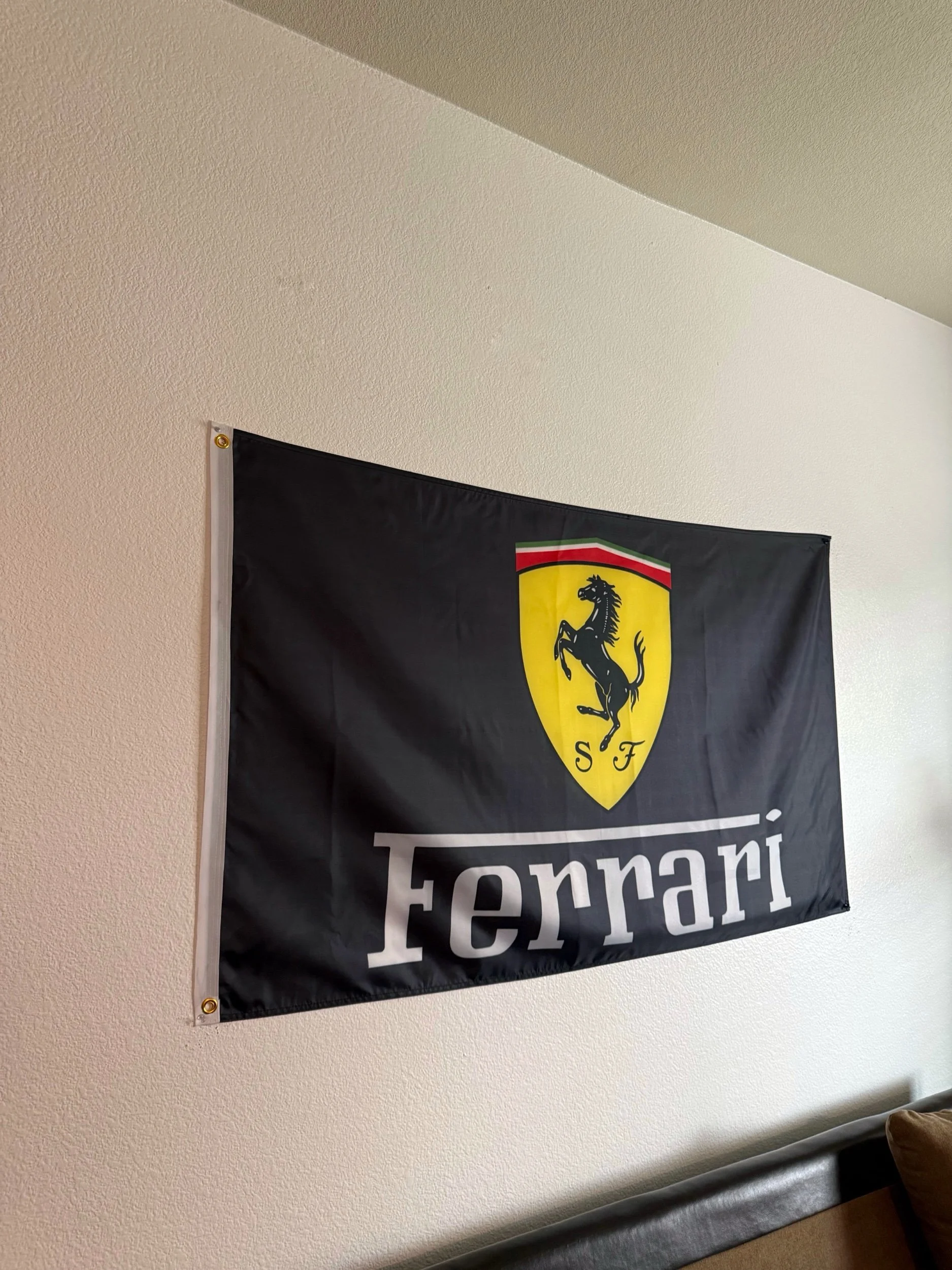 Bring the spirit of Italian racing home with this Black 3x5 Ferrari Flag. Perfect for decorating any garage, office, man cave, or car event booth, this banner features a clean, bold design that pops.