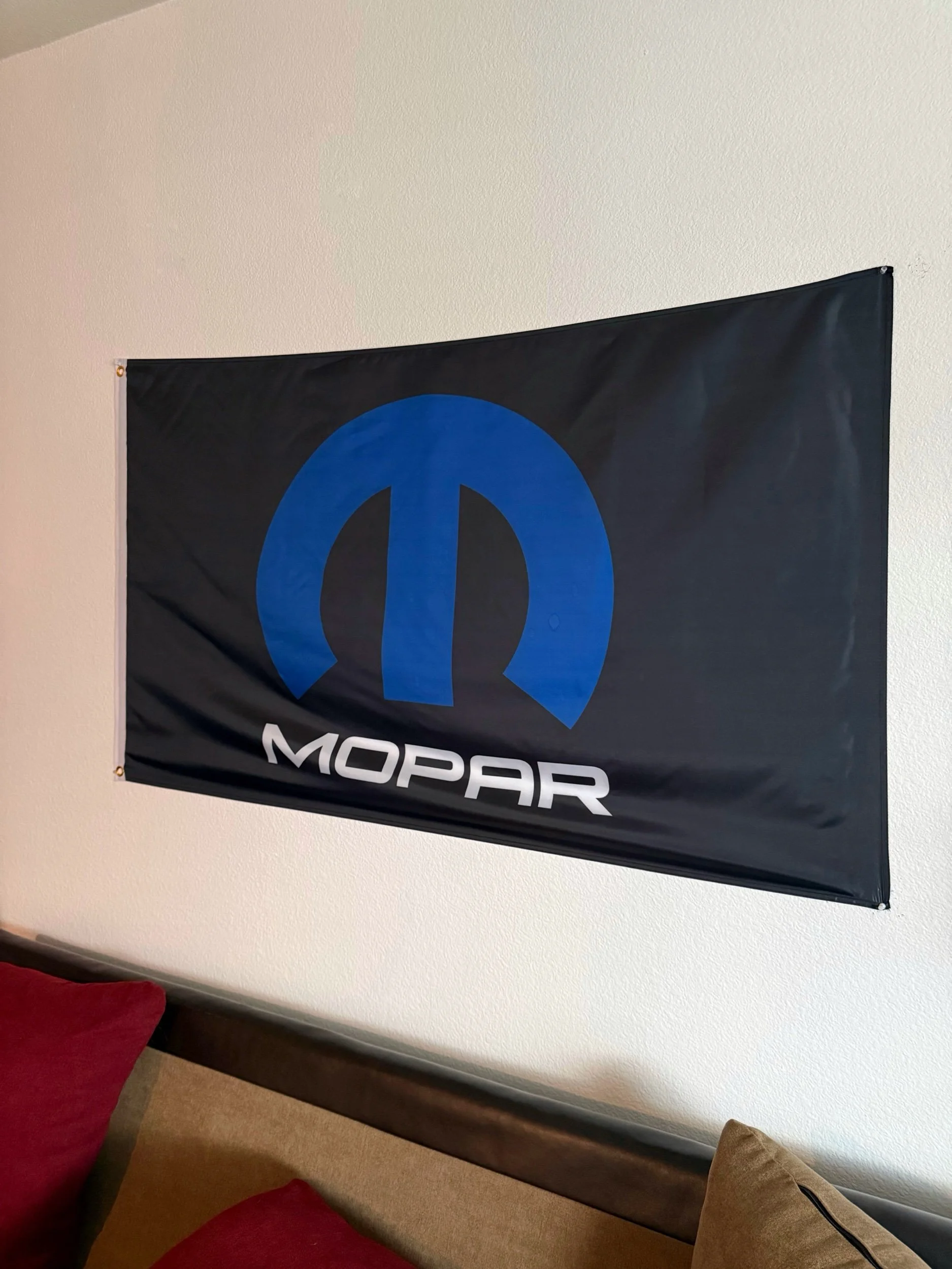 A must-have for any Mopar fan, this 3x5 Mopar Flag is perfect for garages, shops, car shows, and man cave décor. Represents Dodge, Chrysler, Jeep, and Ram heritage.