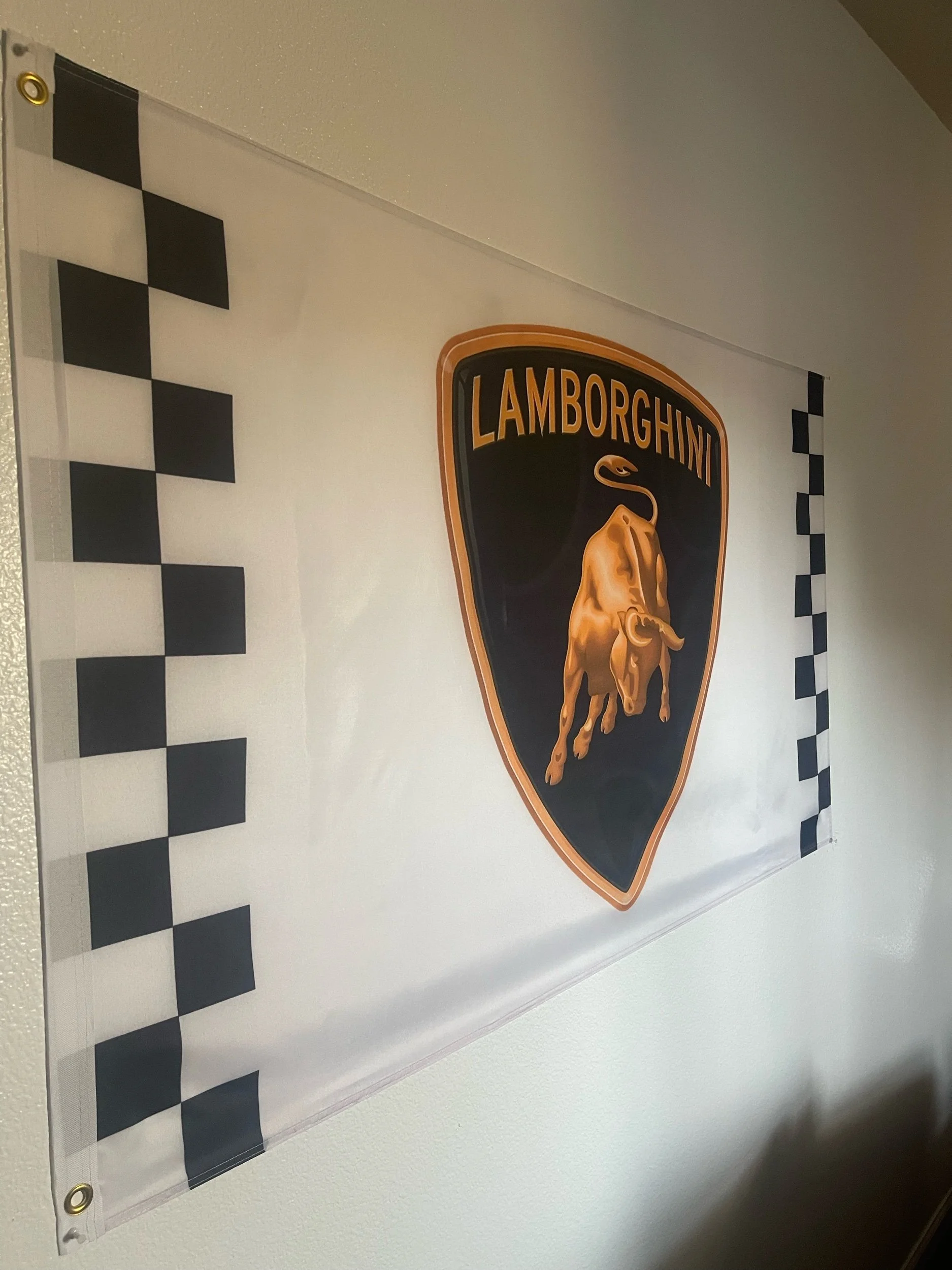Bring the power and prestige of Lamborghini to your space with this premium 3x5 ft flag. Whether you’re a fan of the Aventador, Huracán, or classic models like the Diablo or Murciélago, this flag adds luxury and edge to any garage, mancave, showroom, or office.
